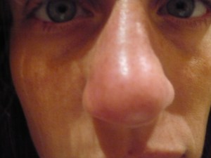 Day five brought a whole new set of issues. The nose now appeared broken. Although Kirsten desperately wanted to avoid the subject of the nose, it became a focal point; an impossible feature to avoid eye contact with. Through glassy eyes, Kirsten confessed that she thought she might lose her nose. Mike consoled her by pointing out the fame and notoriety of Voldemort. She was in no mood for dark humor.